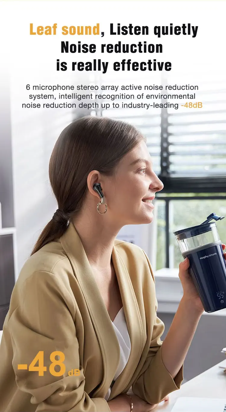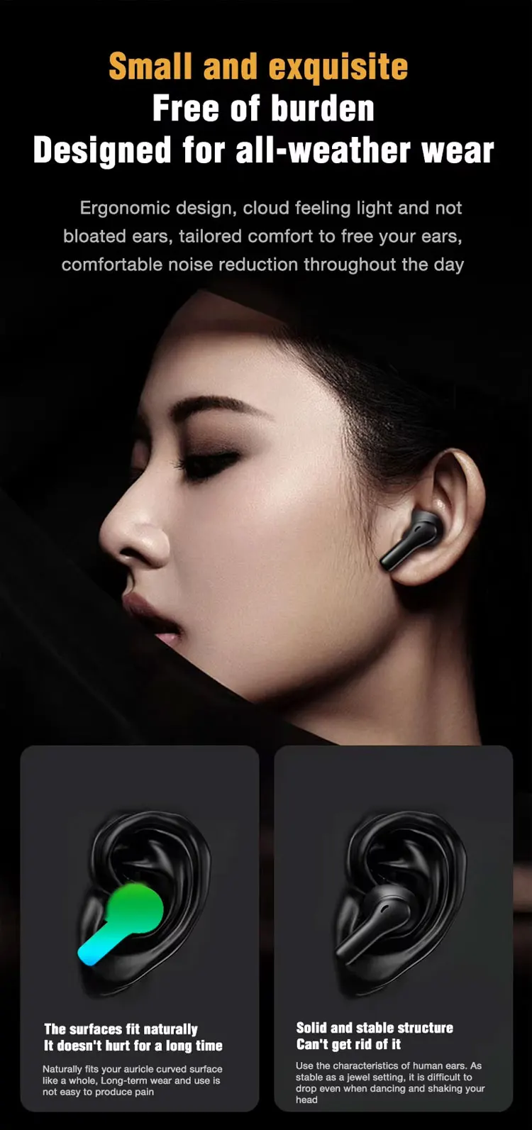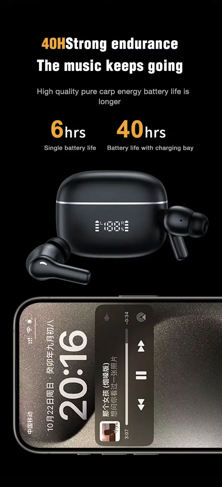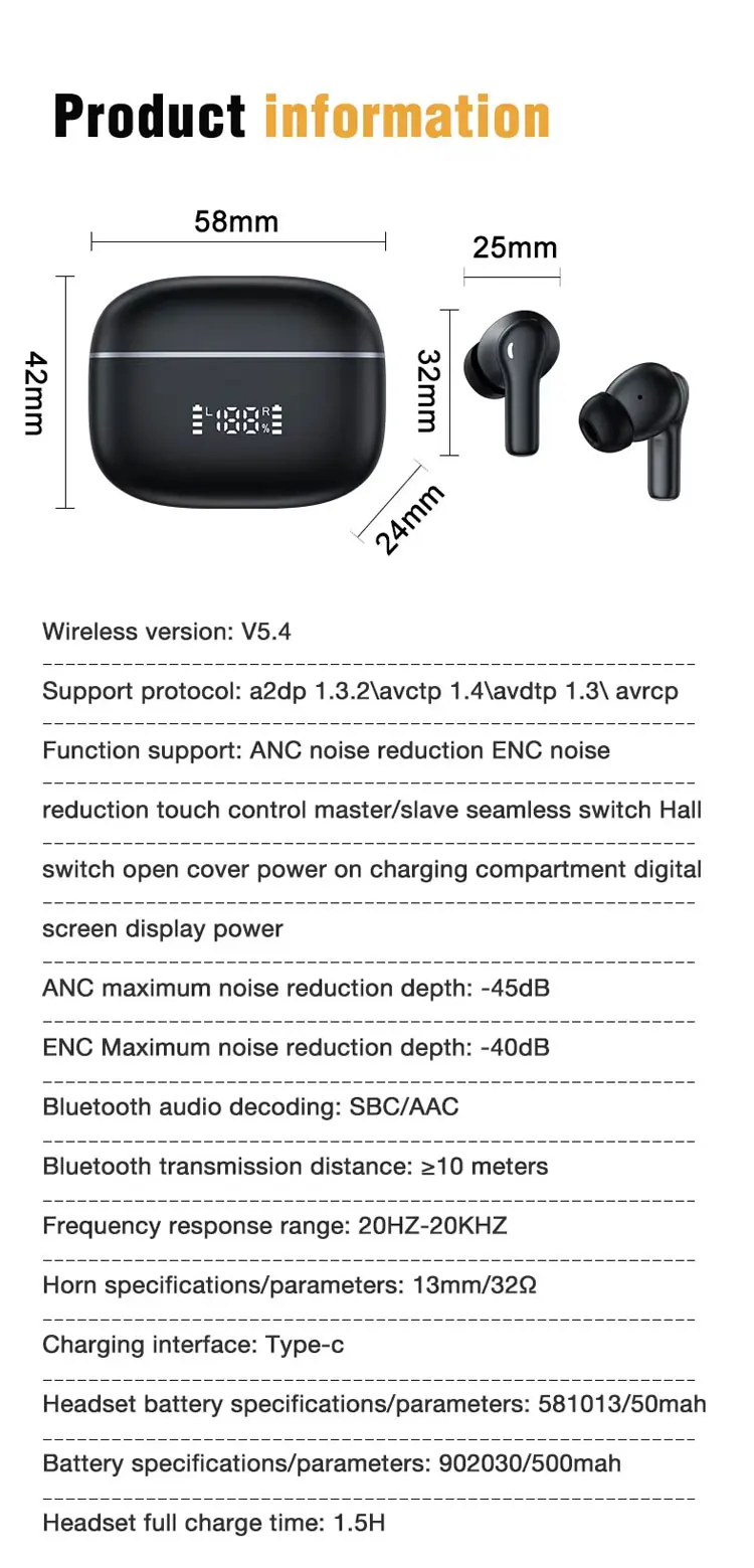 LED Display Active Noise Cancelling Wireless Earbuds 6 Mics ENC In-Ear Digital Screen Display Earphones
