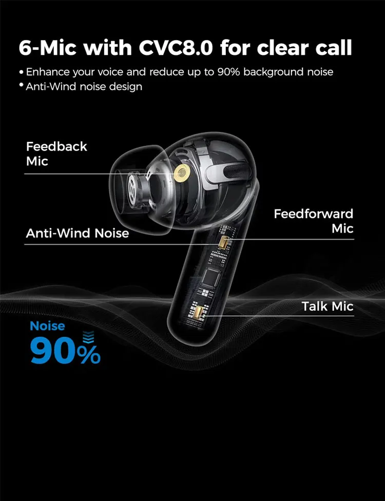 OEM Hybrid ANC+Double Mic ENC Earbuds in Ear Noise Cancelling TWS Earphones Wireless Sport Earphone